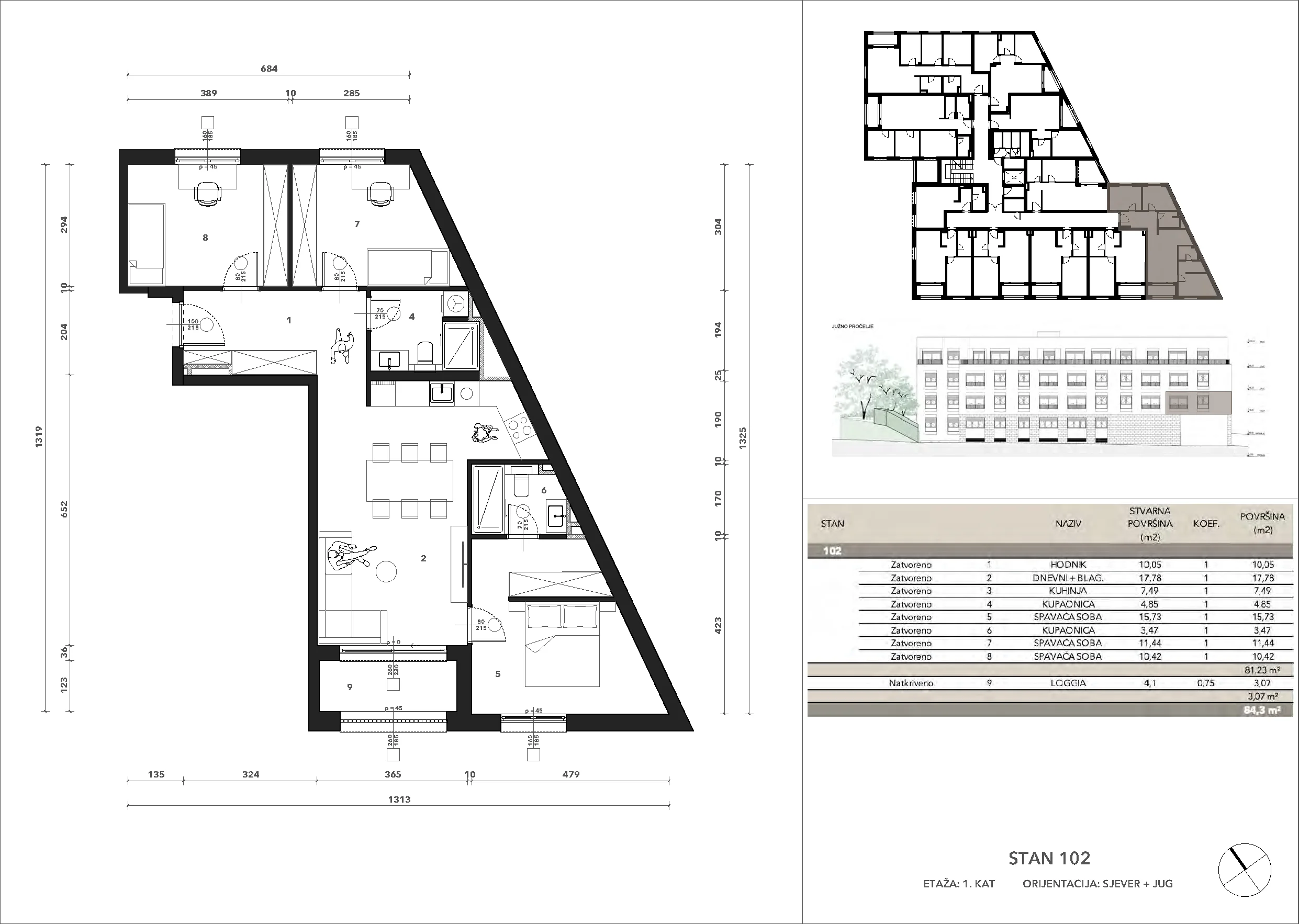 84,3 m2 // četverosobni // 1. kat // S-J // €547,950